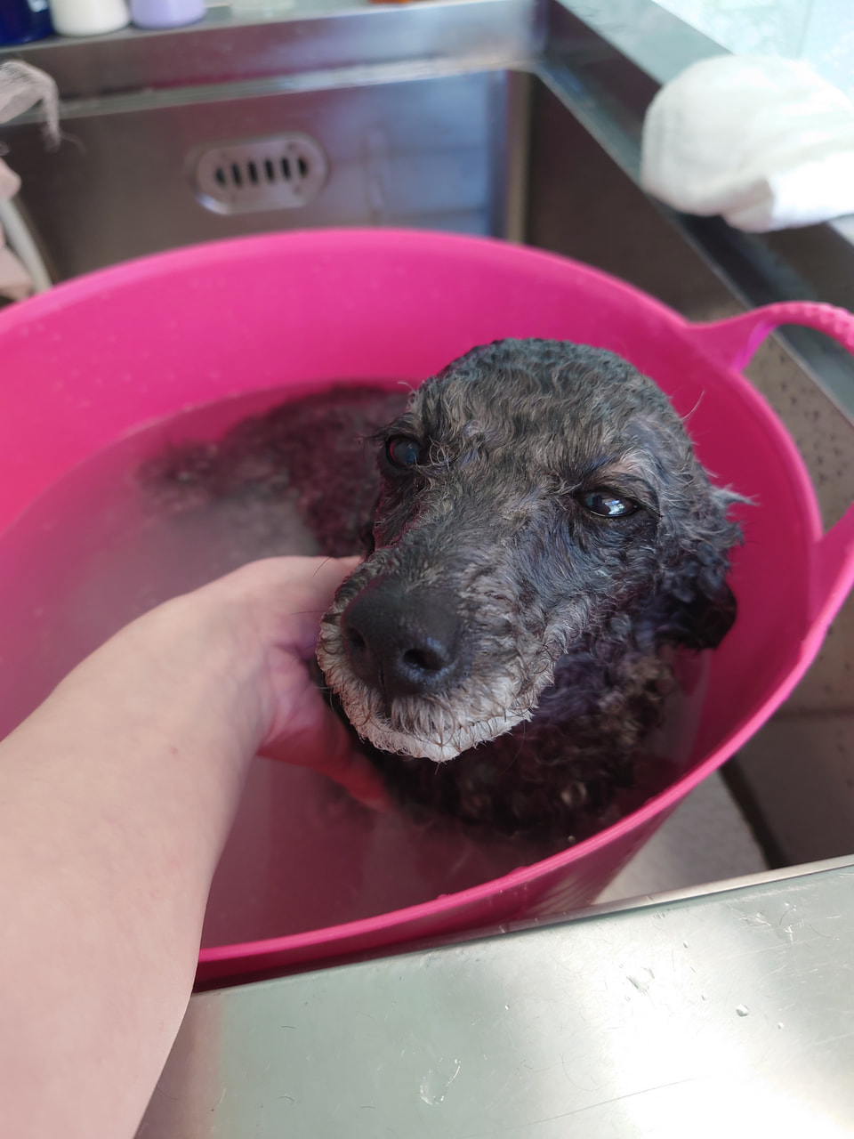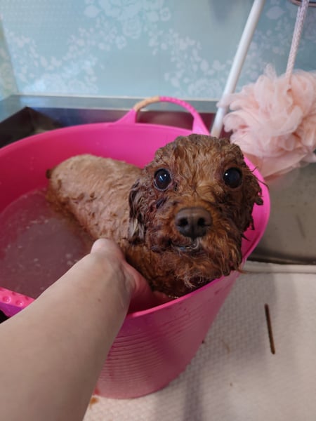 あずきちゃんプレミアムシャンプーで足のポンポンがふわっふわになっていました(*'ω'*)パパさんのお迎え大喜びで可愛いかったです♡